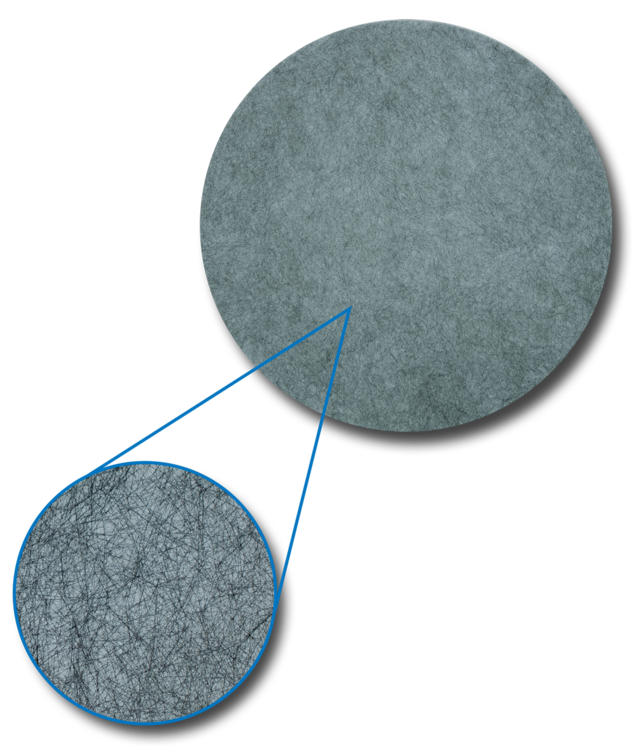 For high stiffness and strength, the base sheet material is sintered. This thermal treatment provides good mechanical stability without compromising purity (no adhesives, binders or additives).